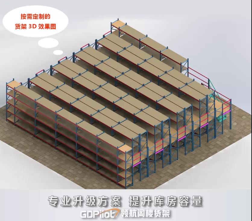 因為領航閣樓貨架有著自身立體結構,能夠充分利用倉儲上層空間,大大提高空間利用率、可以讓企業節省再租倉庫的租金和人力成本。