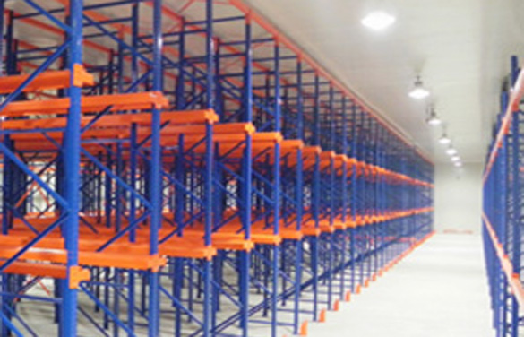 駛入式貨架是一種存取貨方便的倉庫貨架。托盤貨物按照深度的方向存放,一個接著一個,這樣就使得高密度化的存儲形式成為可能。在貨物的存取中,可從貨架的同一側進出,先存后取、后存先取,使用平衡式以及前移式叉車可方便駛入貨架中間進行存取貨物。在實際的倉庫環境區域中,靠墻的貫通式貨架一般可以設計為5個連續托盤貨位,而在倉庫中間區域以及大場地中則可以設計為10個貨位深度的存儲體量。
